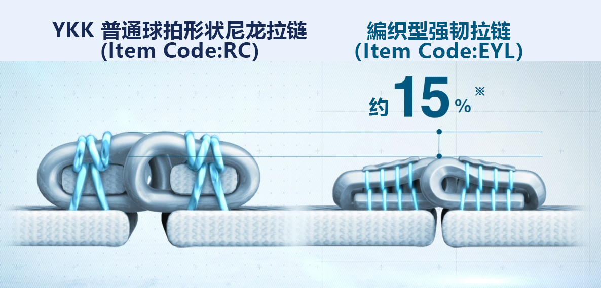 與我們的RC係列尼龍拉(lā)鏈比較,薄了15%。