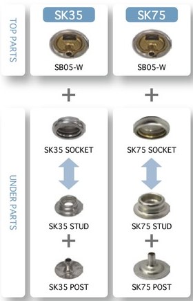 1.SK-環型彈簧四合扣和SW-S型彈簧四合扣(kòu)使用同樣的麵扣。