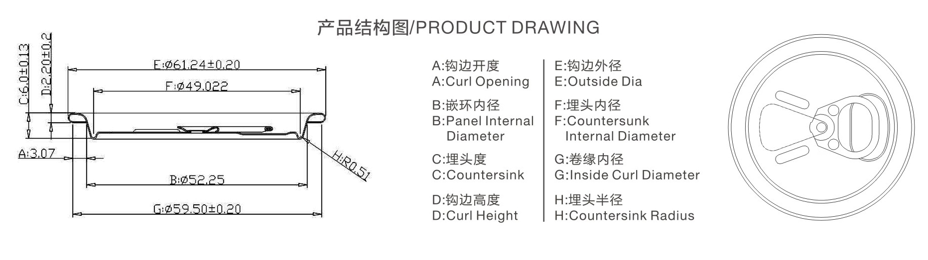 | 鉤邊外徑(jìng)(mm) | 59.44±0.25 |